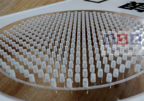 因此我們在亞克力上制作了許多的小孔來方便通話。而下面的字采用背雕制作的方法。